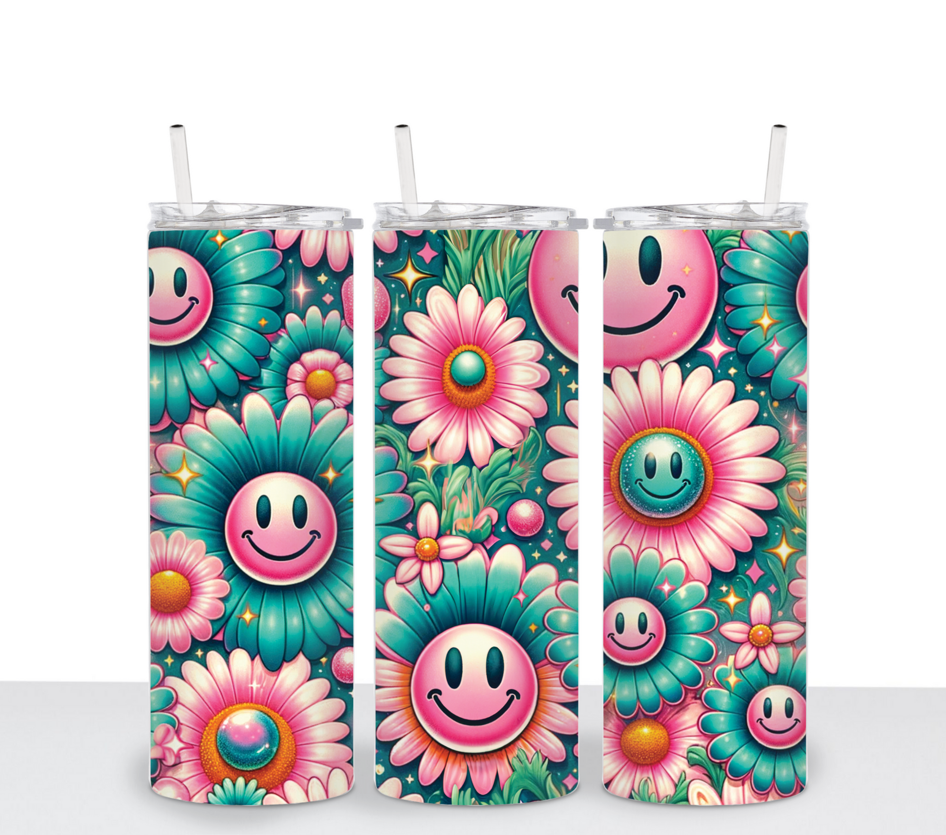 Teal & Pink Floral Smiley